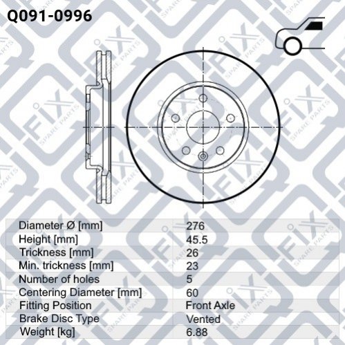 ДИСК ТОРМОЗНОЙ ПЕРЕДНИЙ Q-fix Q0910996