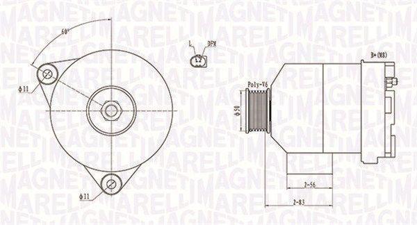 Генератор (12В, 120А, новий) MERCEDES C (CL203), C T-MODEL (S203), C (W202), C (W203), CLK (A208), CLK (A209), CLK (C208), CLK (C209), E (W210), E (W211), M (W163), SLK (R170) 2.4-3.7 12.96- MAGNETI MARELLI 063731872010
