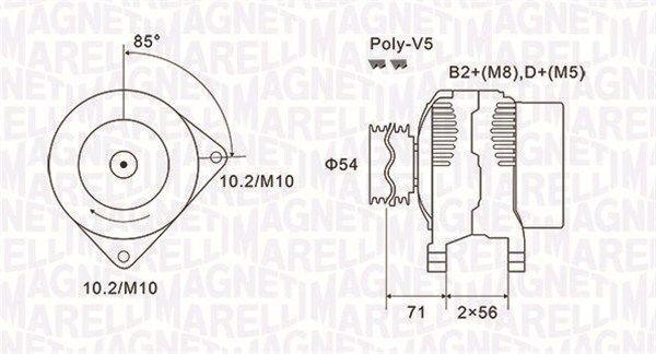 Генератор (14В, 120А, новий) ALFA ROMEO 159, FIAT CROMA, OPEL ASTRA G, ASTRA G CLASSIC, ASTRA G/KOMBI, ASTRA H, ASTRA H CLASSIC, ASTRA H GTC, ASTRA H/KOMBI, MERIVA A, SIGNUM, VECTRA C 1.4-3.0D 02.98- MAGNETI MARELLI 063731833010