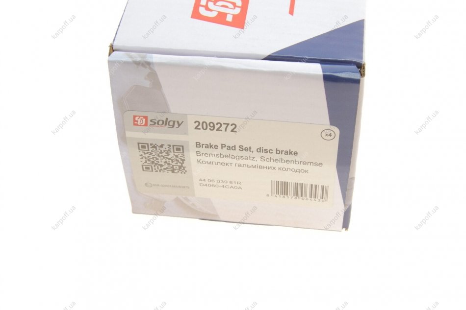 Комплект гальмівних колодок Solgy 209272