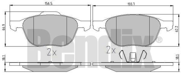 КОЛОДКИ ГАЛЬМІВНІ FORD TRANSIT CONNECT 13> ПЕРЕД БЕЗ ДАТЧИКА Bendix 510237