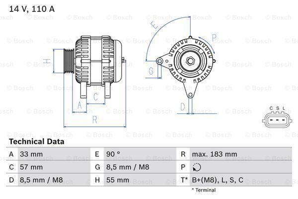 Генератор (14В, 110А, відновлений) NISSAN CUBE, JUKE, PULSAR, QASHQAI I, SENTRA VII 1.6 02.07- BOSCH 0986082730