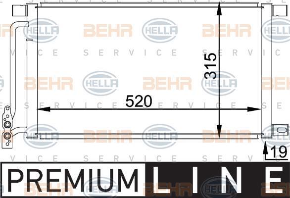 Радіатор кондиціонера, довжина 520 mm HELLA 8FC351038211